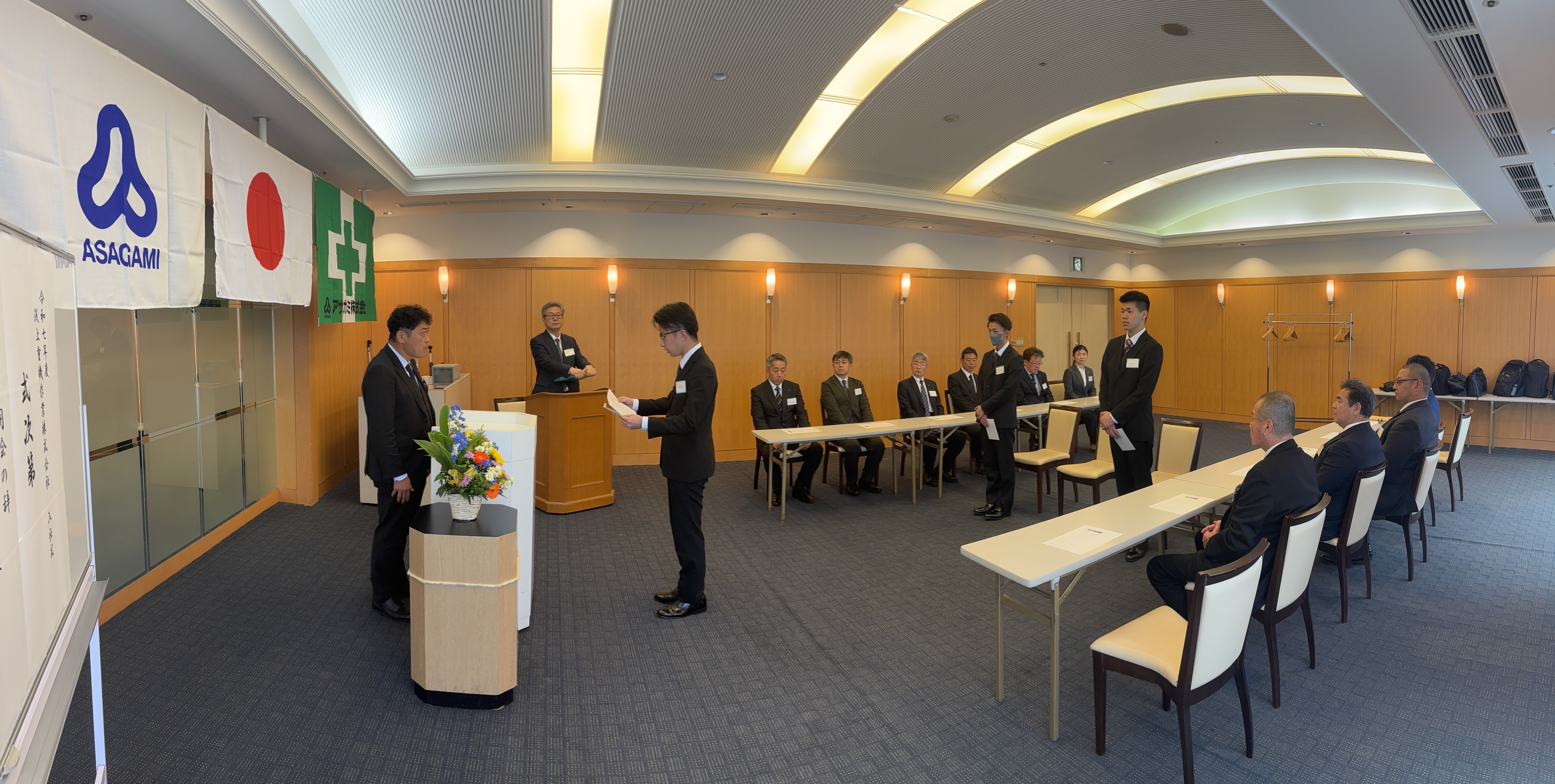 入社式を行いました。新しい仲間を迎えこれからも安全第一に取り組んでまいります。